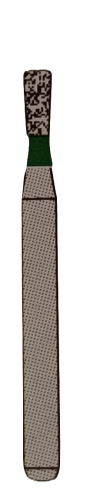 Рабочая часть в форме удлиненного обратного конуса с диаметром 1,4 мм и грубой зернистостью 151 мкм гарантирует эффективную работу. Хвостовик надежно фиксируется, выдерживая скорость до 450 тысяч оборотов в минуту. Инструмент отличается долговечностью и высоким качеством.